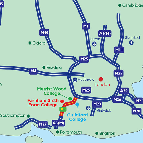 * Guildford College Group ก่อตั้งมานานกว่า 70 ปี มีทั้งหมดอยู่ 3 colleges คือ Guildford College, Merrist Wood College, Farnham Sixth Form College