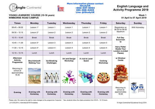 **  On Friday 19 and Monday 22 April, the school will close for the Easter National Holiday.  Students will spend Friday 19 April with their homestay family and on Monday 22 April 2019, students will participate in a full day excursion to London.
