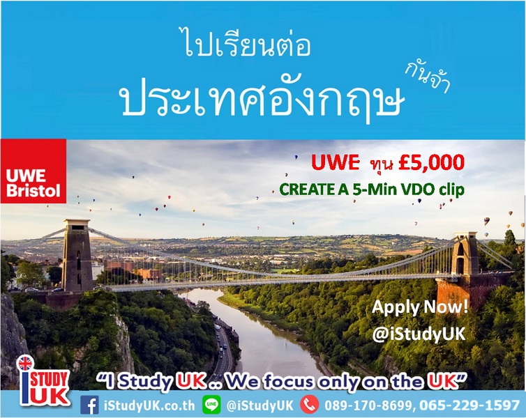 | เรียนต่อปริญญาโทอังกฤษ ณ UWE Bristol – University of the West of England, UK |