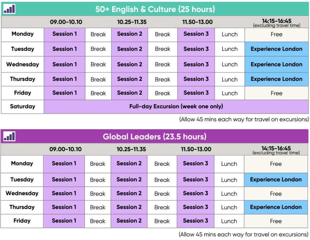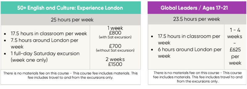 * มีกิจกรรมที่ให้นักเรียนเข้าร่วมหรือเยี่ยมชมมากมาย เช่น Madame Tussauds, British Museum, the National Gallery และการท่องเที่ยวนอกลอนดอนอย่าง Stonehenge, เมือง Cambridge และ Oxford รวมไปถึงกิจกรรมด้านกีฬา เช่น tennis, cricket, squash, badminton เป็นต้น