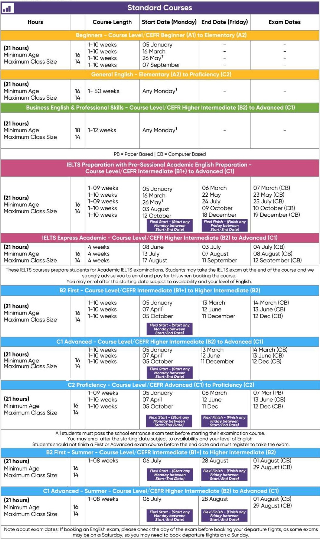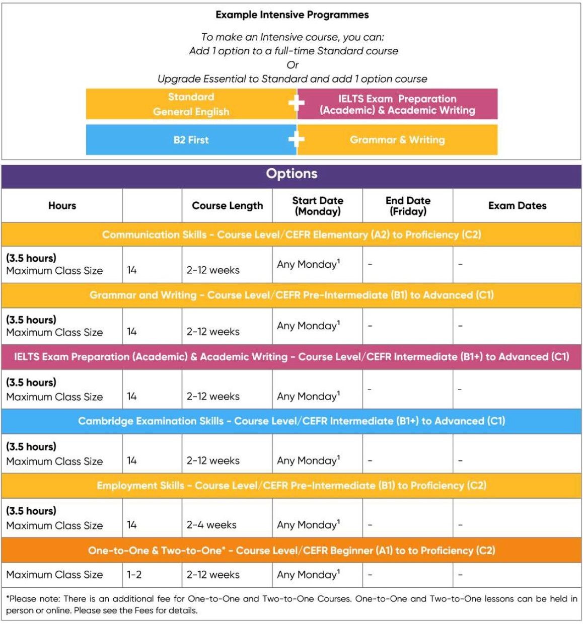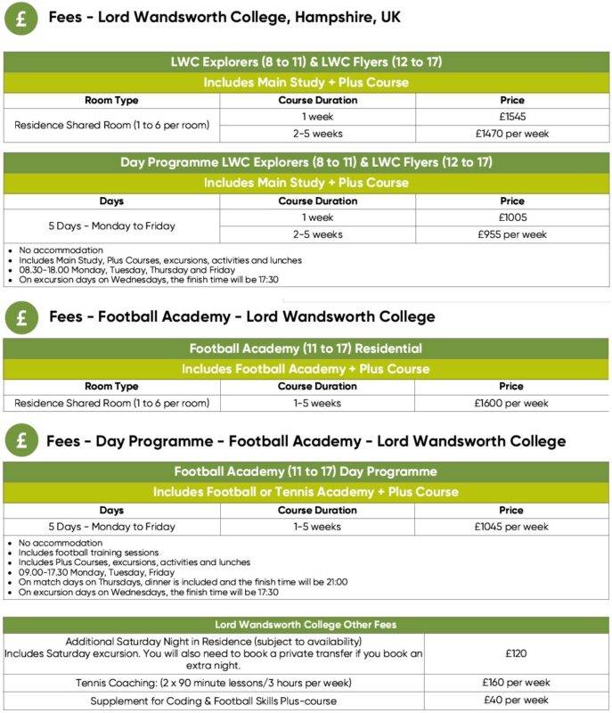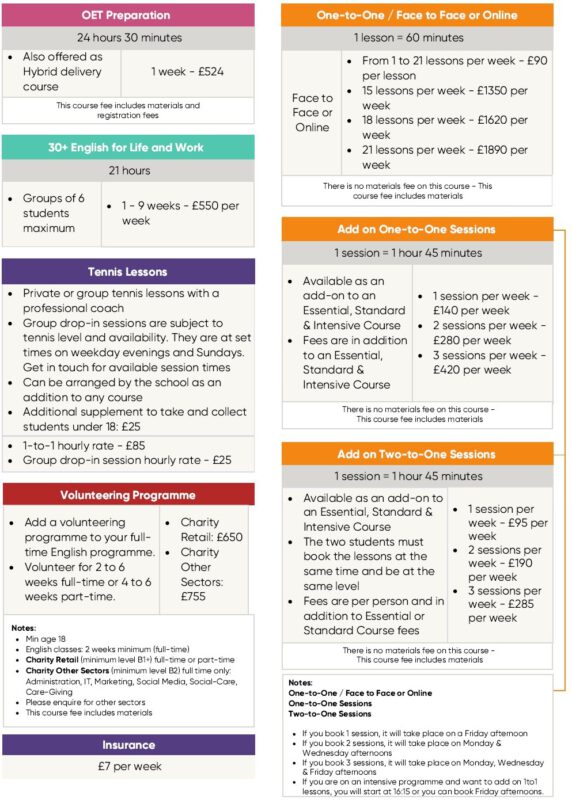 – หากมีการเปลี่ยนแปลงวันและหลักสูตรภายหลัง ทางโรงเรียนคิดค่าใช้จ่ายเพิ่ม £50