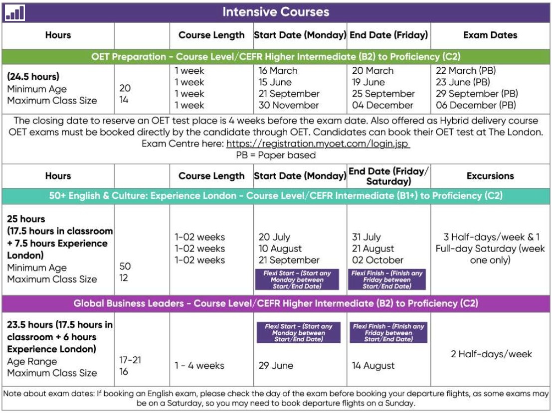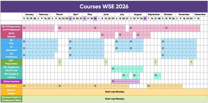 หลักสูตรเรียนภาษาอังกฤษ 2026 ที่ Wimbledon School of English (London) มีดังนี้