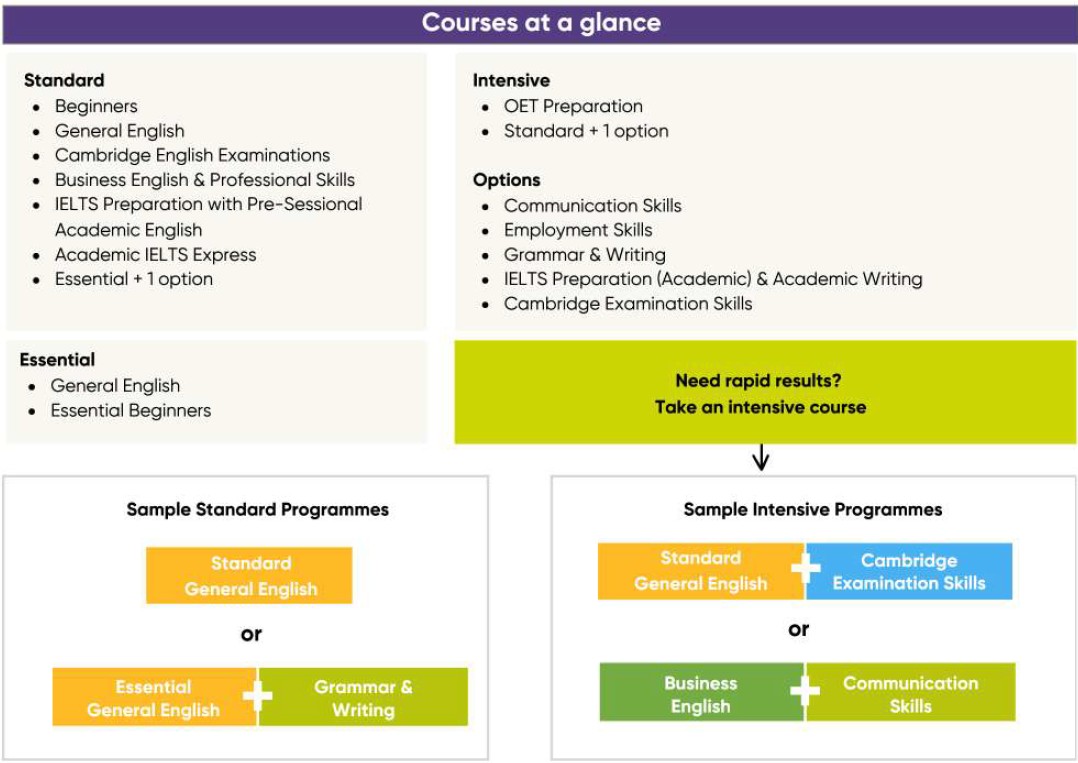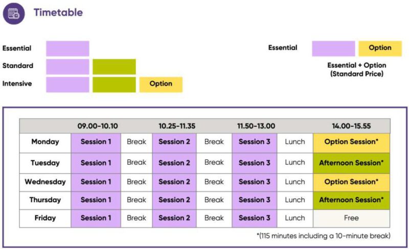 * เน้นระบบการเรียนภาษาที่เข้มข้น ตามแบบฉบับชาวอังกฤษ serious study-intense courses ( เรียนอย่างต่ำ 20 ชั่วโมงต่อสัปดาห์ )