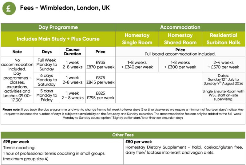 Wimbledon School of English Course Fees (2026)